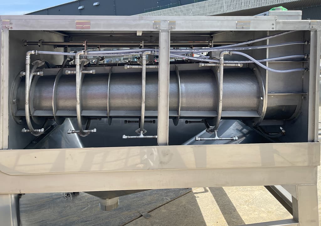 配置したパンチングプレートの細乳から水がしぼり出されます。前方に移送されるにしたがい圧力が